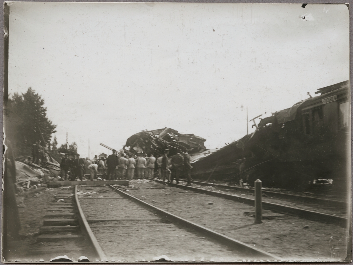 Stationsområdet i Malmslätt efter kollisionen mellan Statens Järnvägar, SJ A 1016 och SJ B 1035.