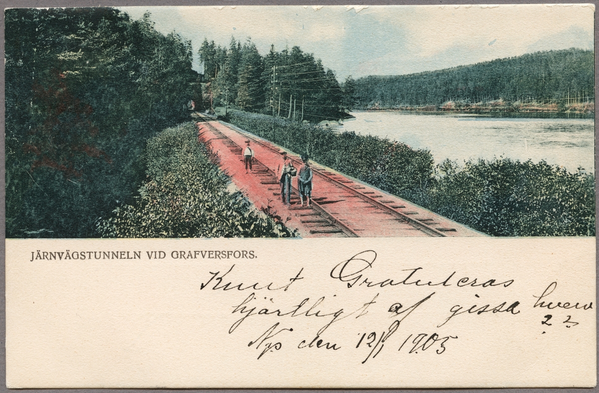 Järnvägstunnelen strax norr om Graversfors i riktning Näkna. Till höger om järnvägsspåret ligger sjön Näknen.