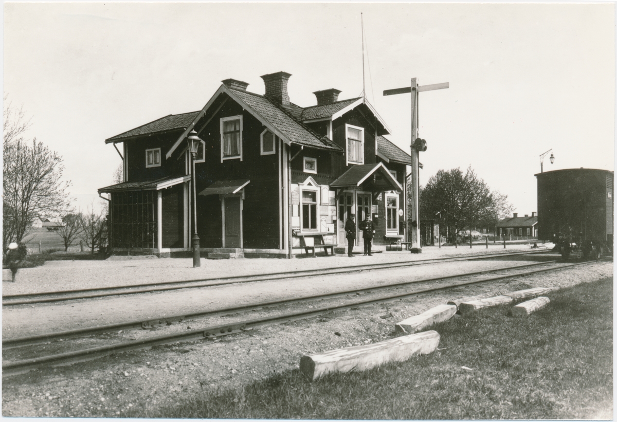 Östra Husby station. Vikbolandsbanan, VB. Anlades 1892. Övergick till Statens Järnvägar,SJ 1950. Nedlagd 1960. Bangården utbyggdes 1945