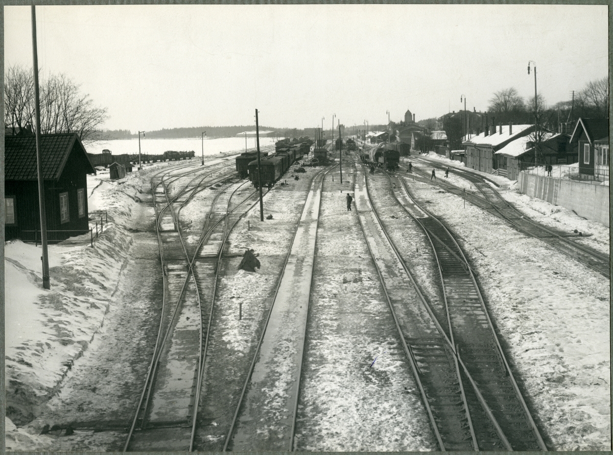 Utsikt från gatubron i Nässjö mot norr, utvisande spårsystemet vid 1915 års slut.