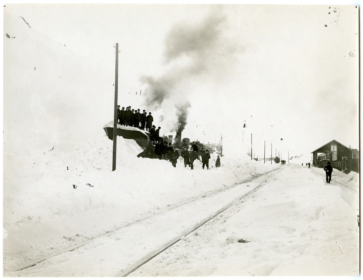 Snöröjning vid Riksgränsen station.