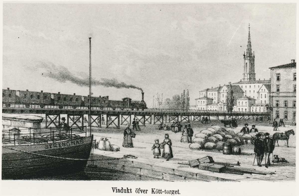 Viadukt över Köttorget, Riddarholmskyrkans torn till höger i bild.