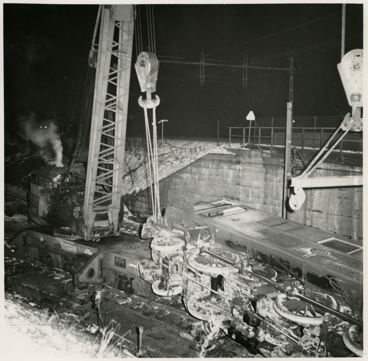Titel: Kranarbete efter urspårning av lok vid Tomteboda.