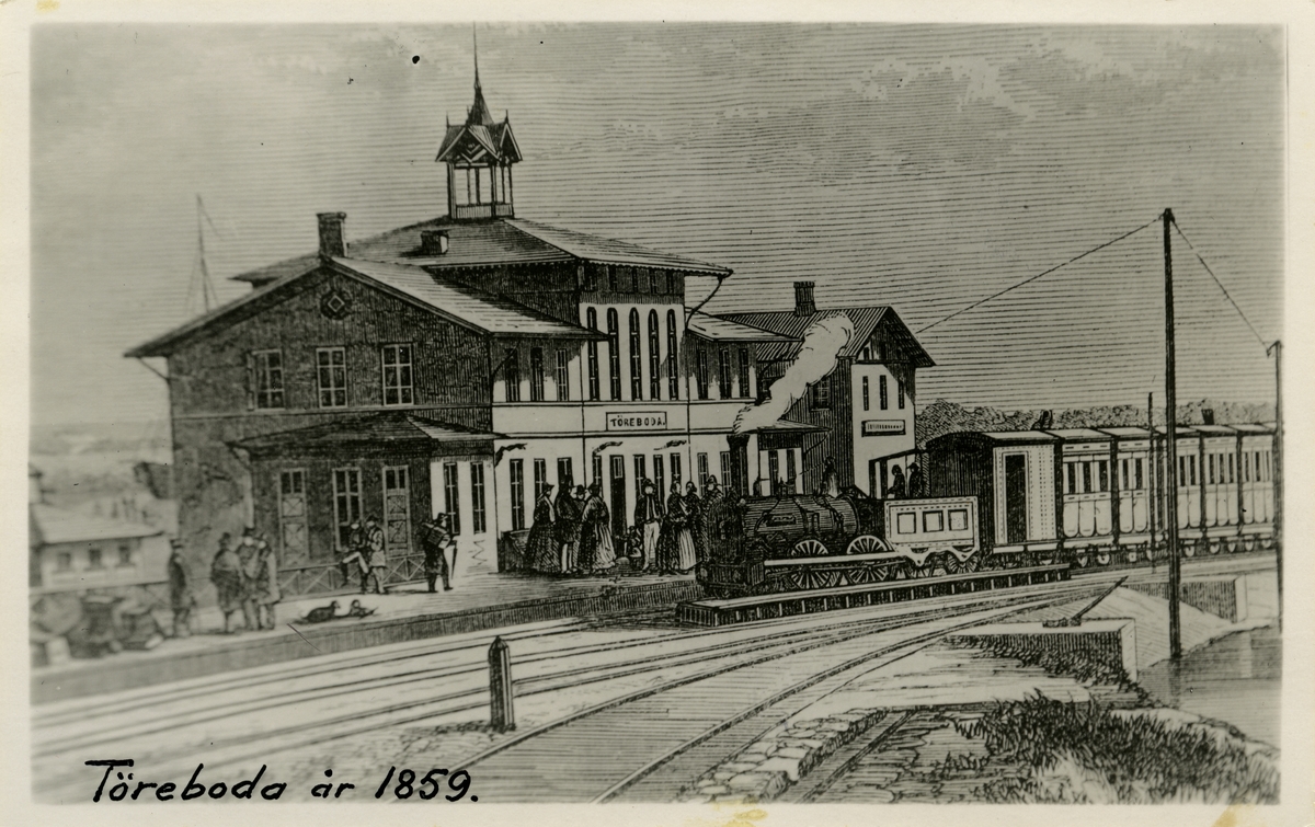 Titel: Träsnitt av Töreboda station.