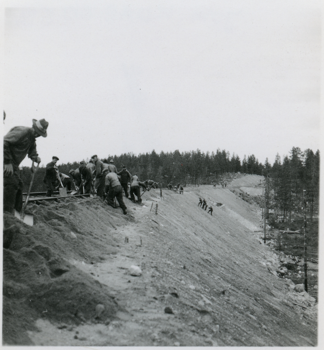 Rälsläggning vid inlandsbanans enda järnvägstunnel, strax utanför Jokkmokk. Sträckan Sorsele - Jokkmokk.