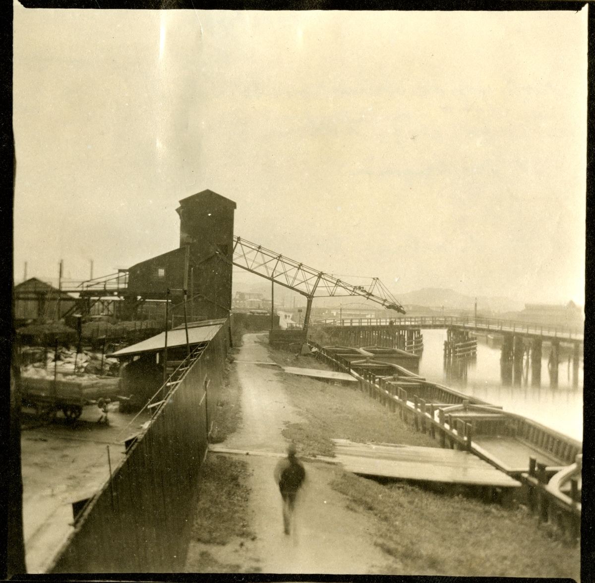 Koluppfodringverk med ångmaskin vid Gullbergsån för SJ, Statens Järnvägar, kolgård (järnbruk 1919). Tillverkare: "? Titan", Köpenhamn, Tillåten belastning 2000 kg.