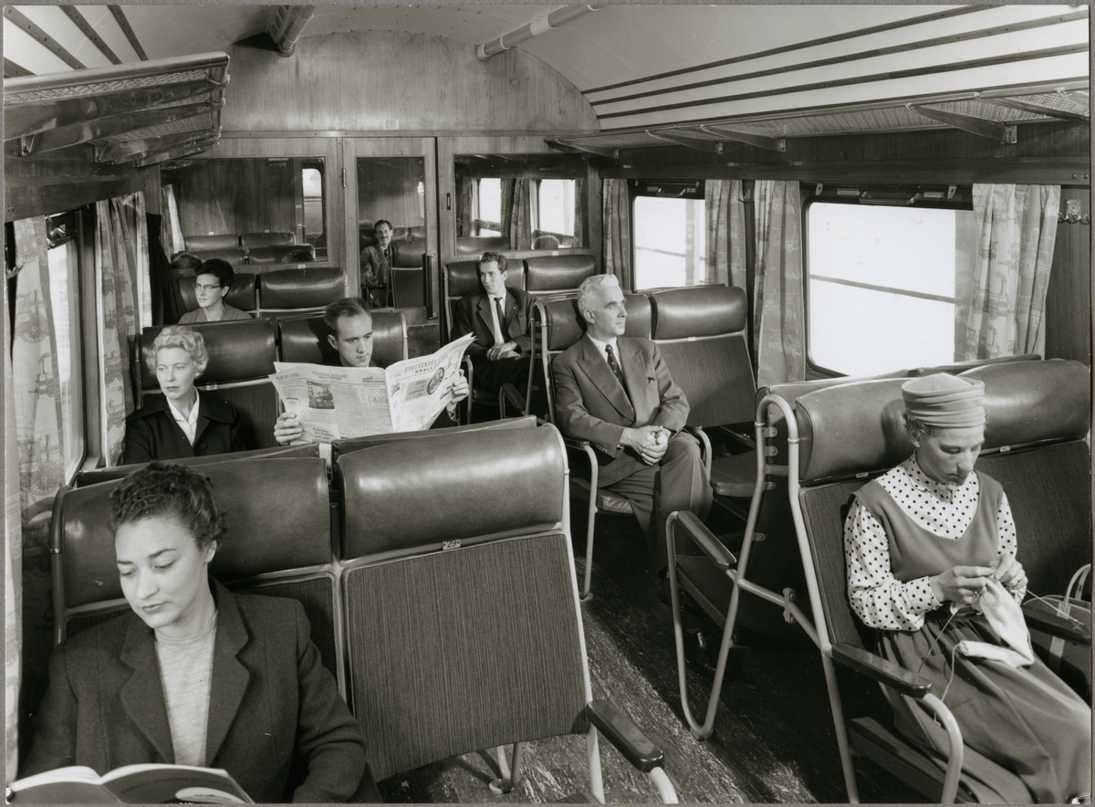 Interiör av en Trafikaktiebolaget Grängesberg - Oxelösunds Järnvägar, TGOJ personvagn.