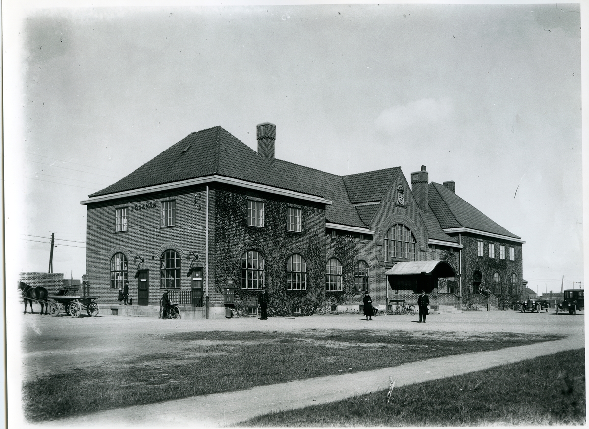 Järnvägen från Kattarp till Höganäs öppnades 1885 av SHJ, Skåne - Hallands Järnväg. I Höganäs fanns då två stationer, Höganäs Övre och Höganäs Nedre. Efter 1919 blev det en station istället för Höganäs Övre och Höganäs Nedre. Då byggdes nya stationshuset två våningar i tegel. En stor ombyggnad ägde rum 1936, magasinet sammanbyggdes med stationsbyggnaden. Nedlagd 1992.