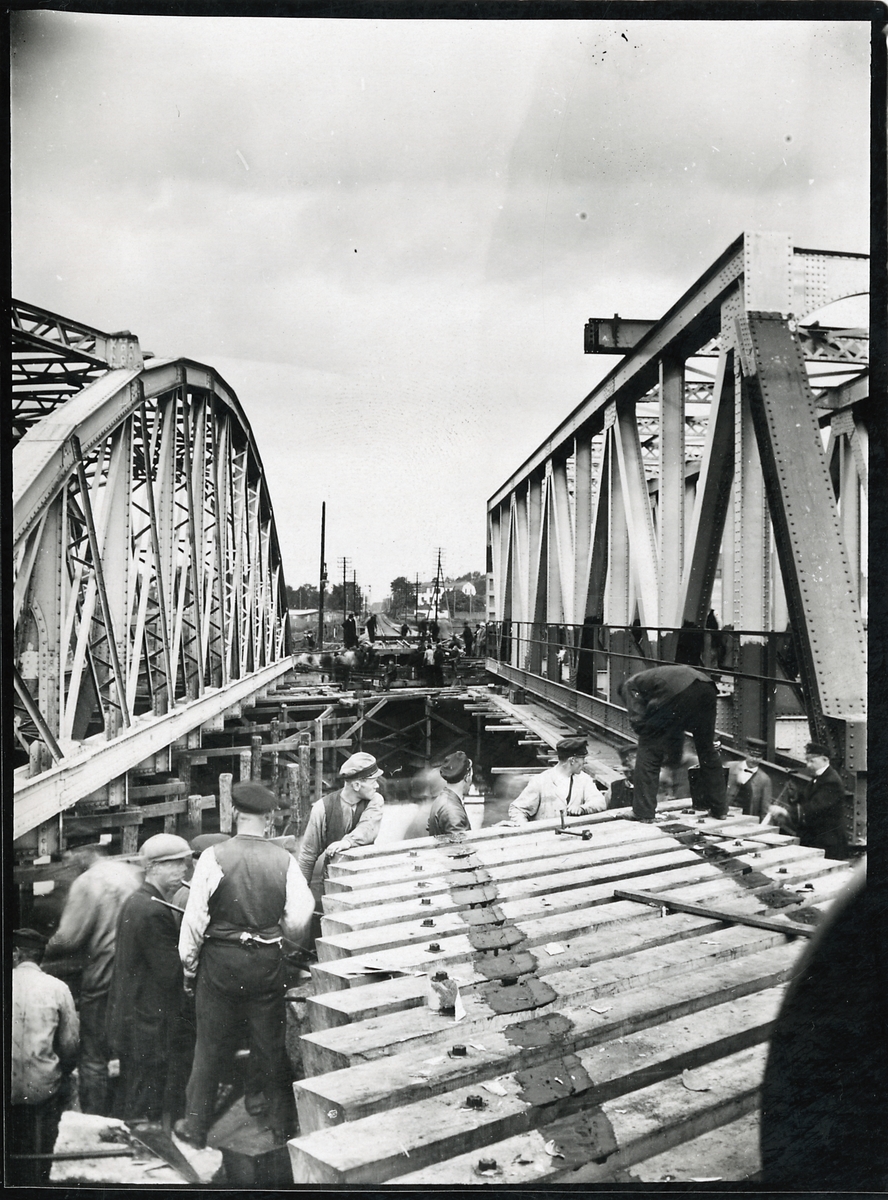 Titel: Järnvägsbrobygget över Fyrisån i Uppsala.