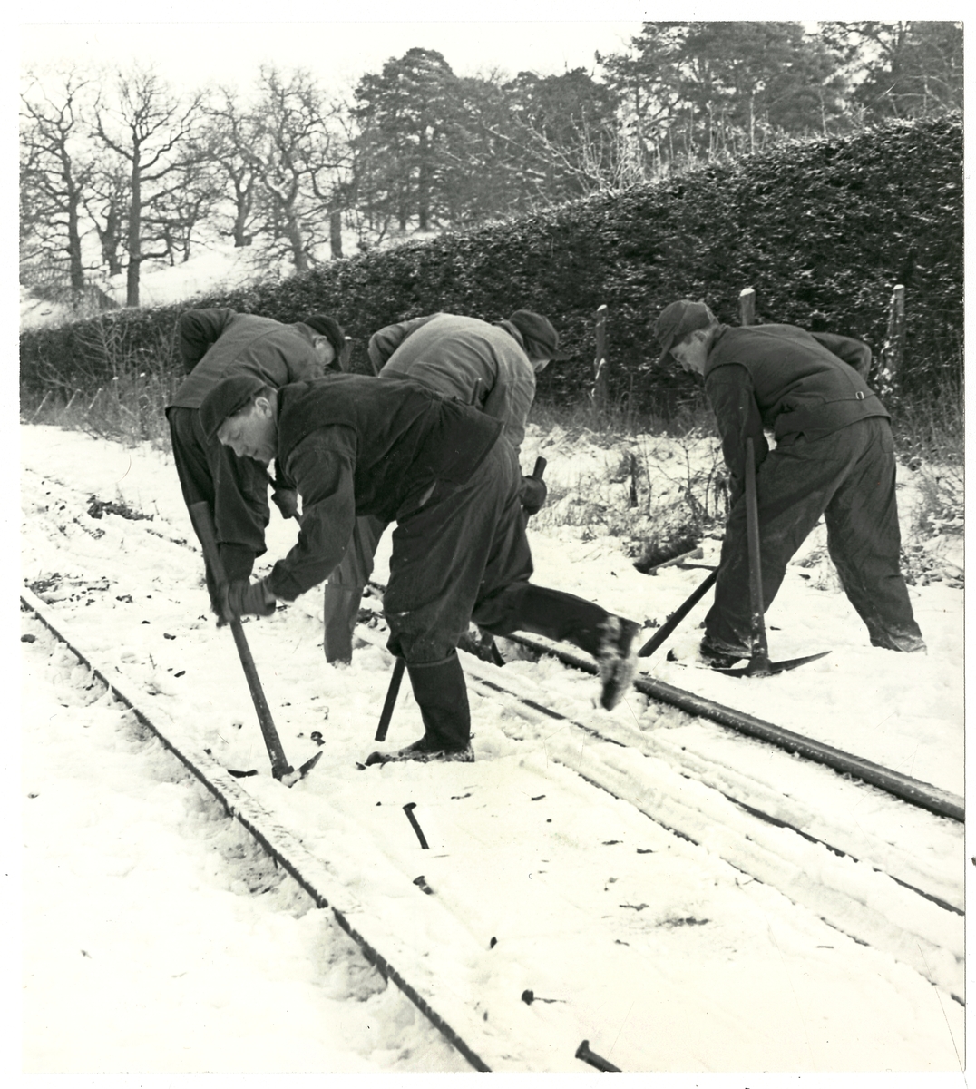 Titel: Banarbete vid smalspårsjärnväg.