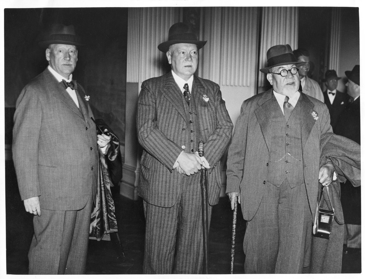 Bild tagen i samband med Julius Dorpmüllers besök i Sverige. Dorpmüller, i mitten, var vid tiden för besöket generaldirektör för Deutsche Reichsbahn samt transportminister under den nazistiska riksregeringen. Längst till vänster står Axel Granholm, dåvarande generaldirektör för Statens Järnvägar. Längs till höger står den dåvarande chefen för järnvägarna i Stettin, Friedrich Lohse.
