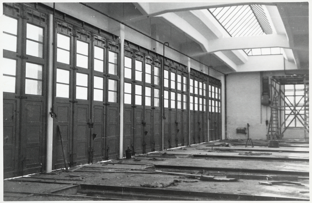 Titel: Ellokstall i Malmö. På väggen hänger en värmefläkt.