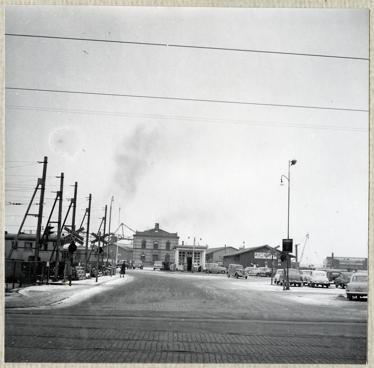 Titel: Järnvägsövergång vid Lilla Hamngatan I Helsingborg på linjen mellan färjestationen och centralstationen.