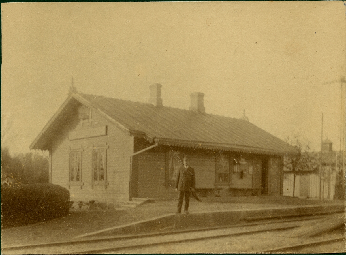 Sperlingholms station. Halmstad-Nässjö Järnväg, HNJ.Järnvägen öppnades 1877 och övertogs av Statens Järnvägar 1945.