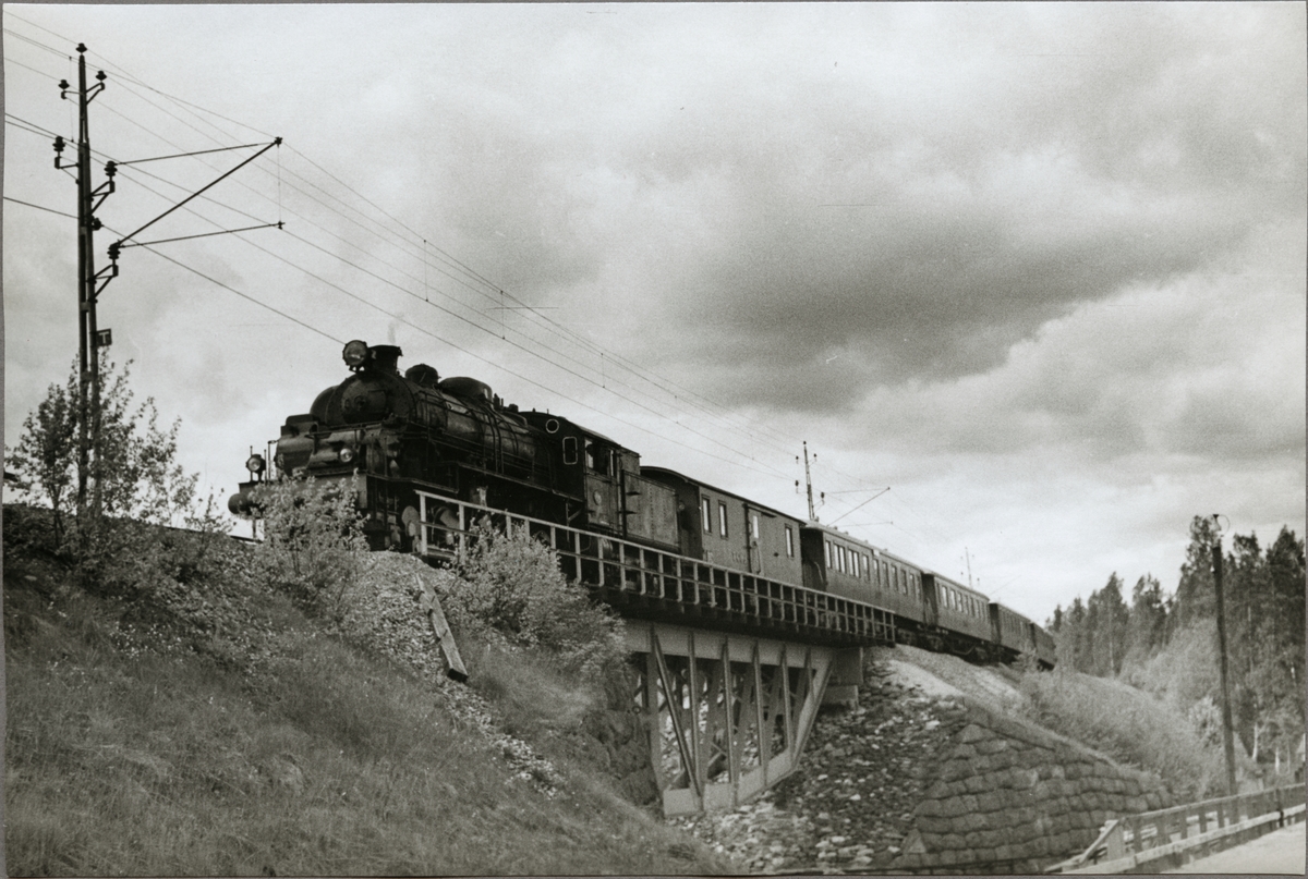 Trafikaktiebolaget Grängesberg - Oxelösunds Järnvägar, TGOJ M3t 71 passerar järnvägsbro.