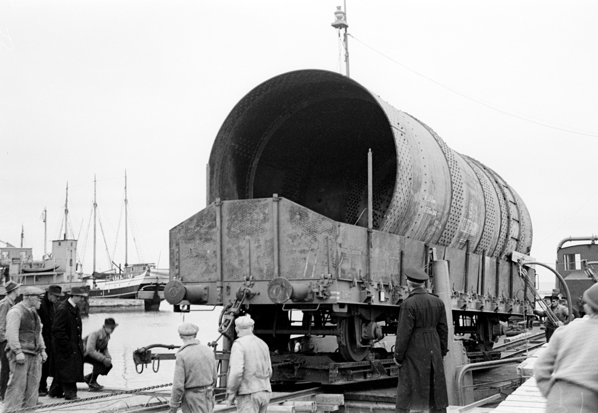 Titel: Transport av cementugn Kalmar - Degerhamn. Fotograferat av Stationsskrivare Nelson, Kalmar Central