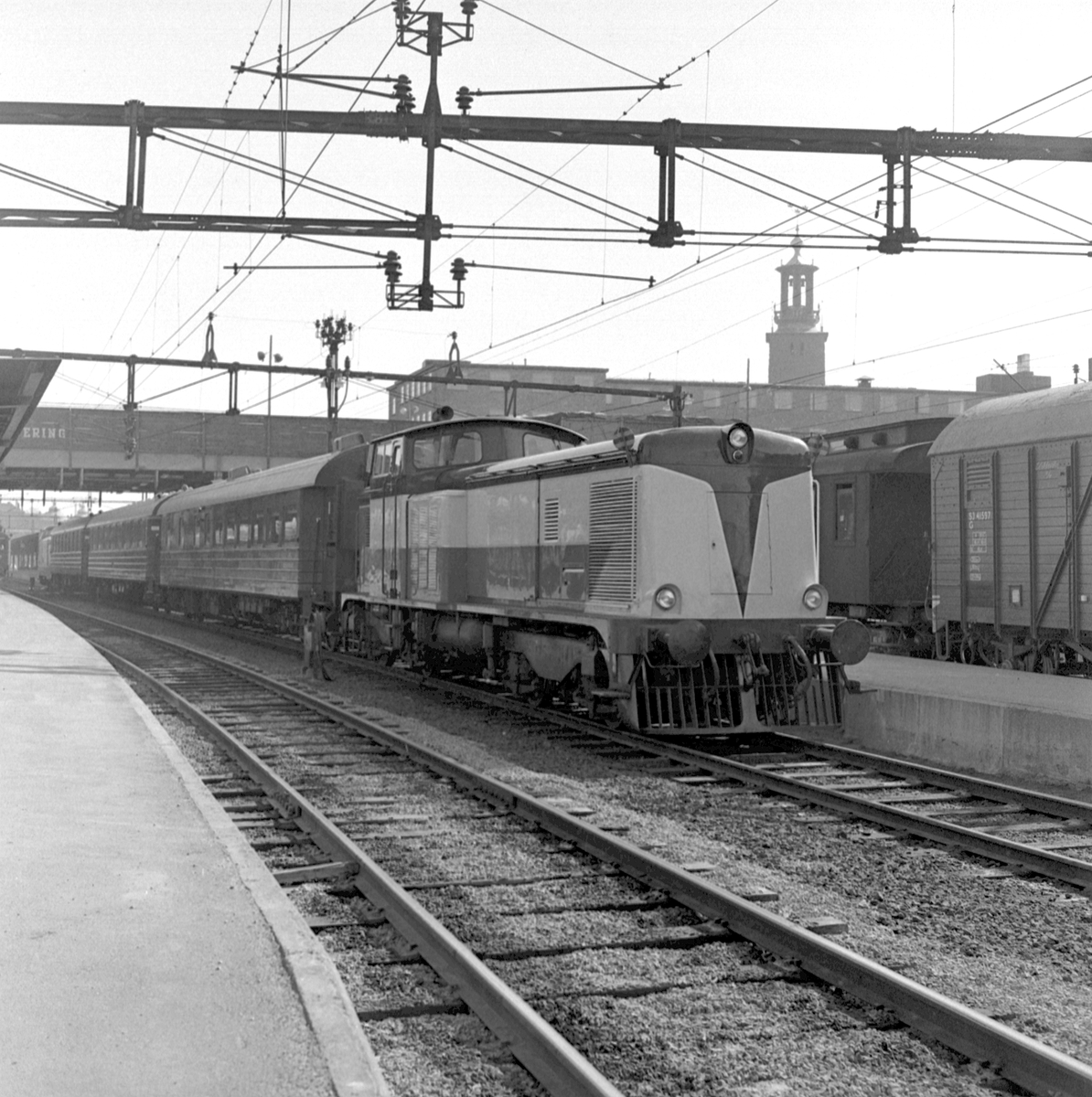 Dieselpneumatiskt lok Stockholm Nynäs Järnväg SNJ T6 i folkmun "Påfågeln" eller "Papegojan". Motala Verkstads provlok skrotades 1969 endast 10 år gammalt.