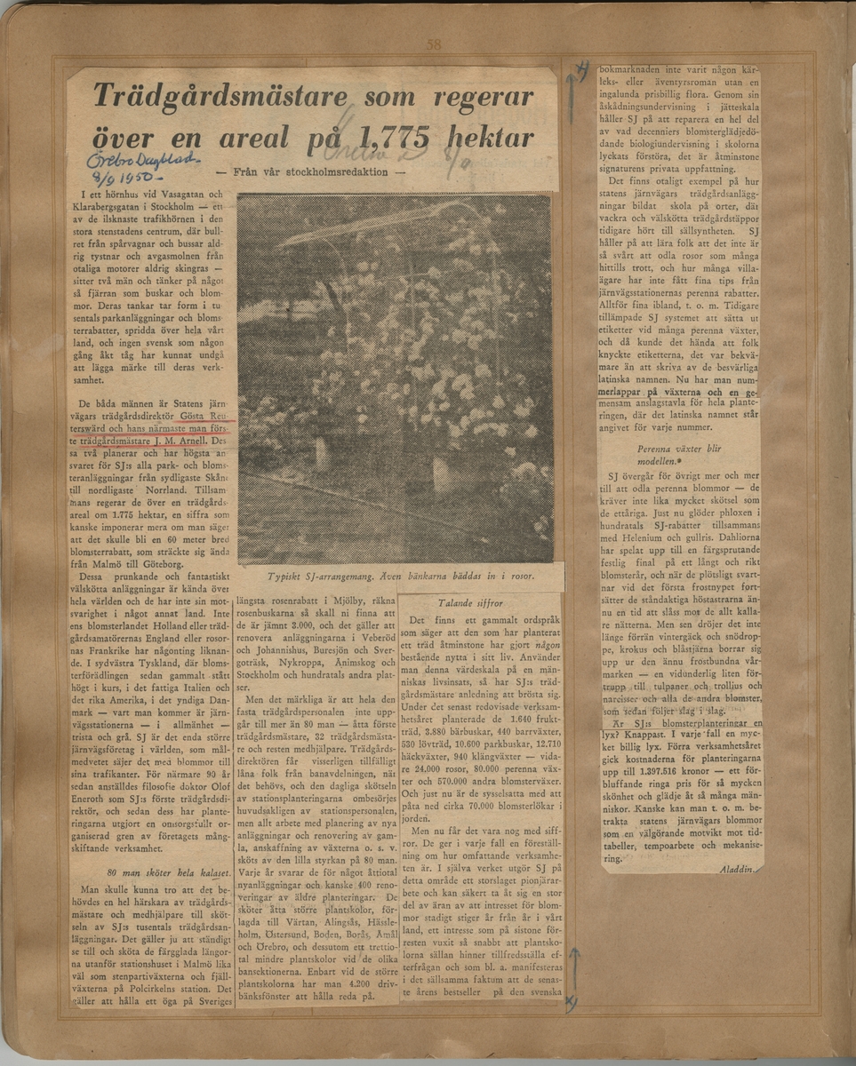 Örebro Dagblad, 08-09-1950: Trädgårdsmästare som regerar över en areal på 1775 hektar.