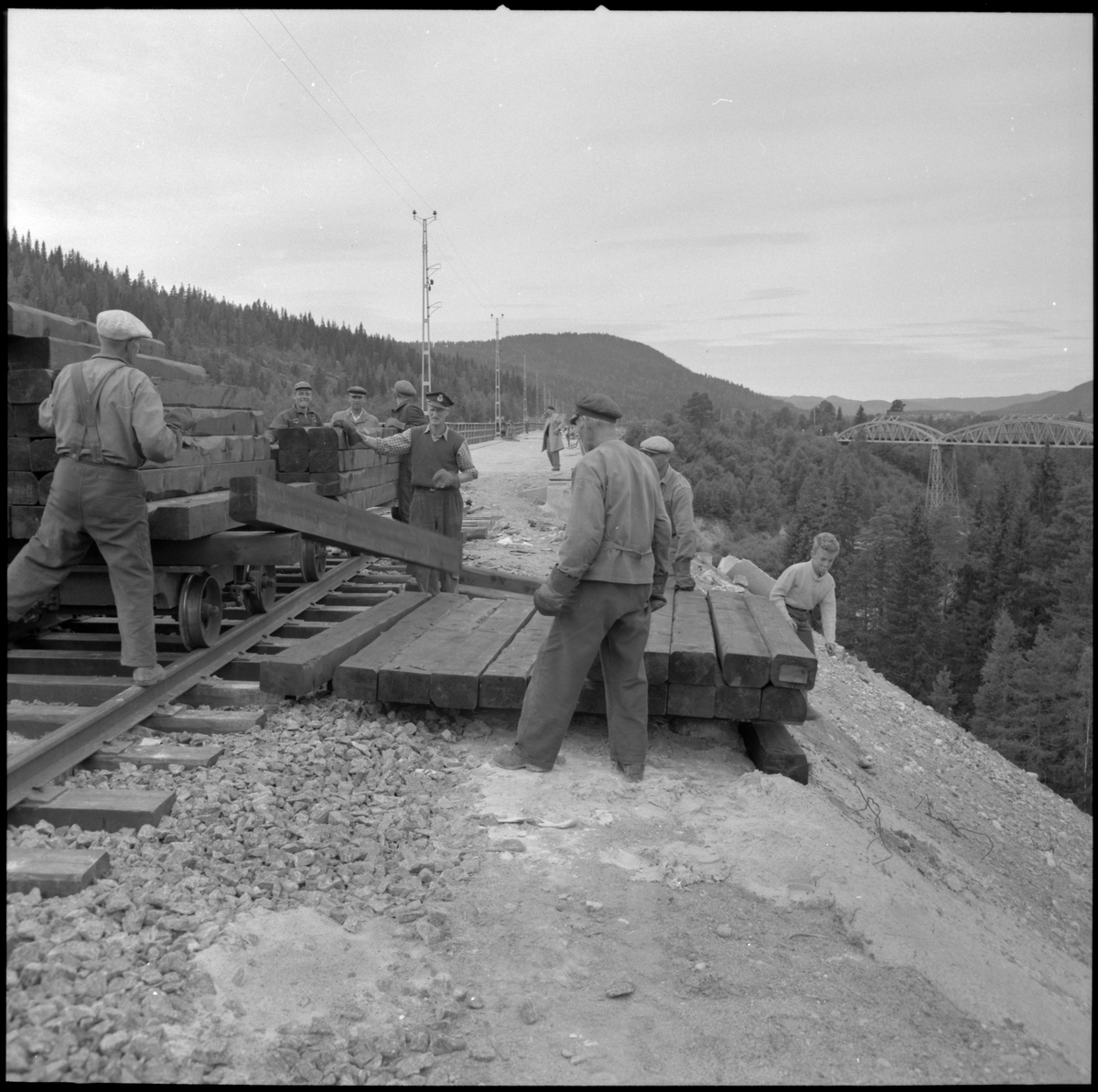 Den nya bron över Indalsälven vid Ragunda ska spårläggas. Den gamla bron syns i bakgrunden.