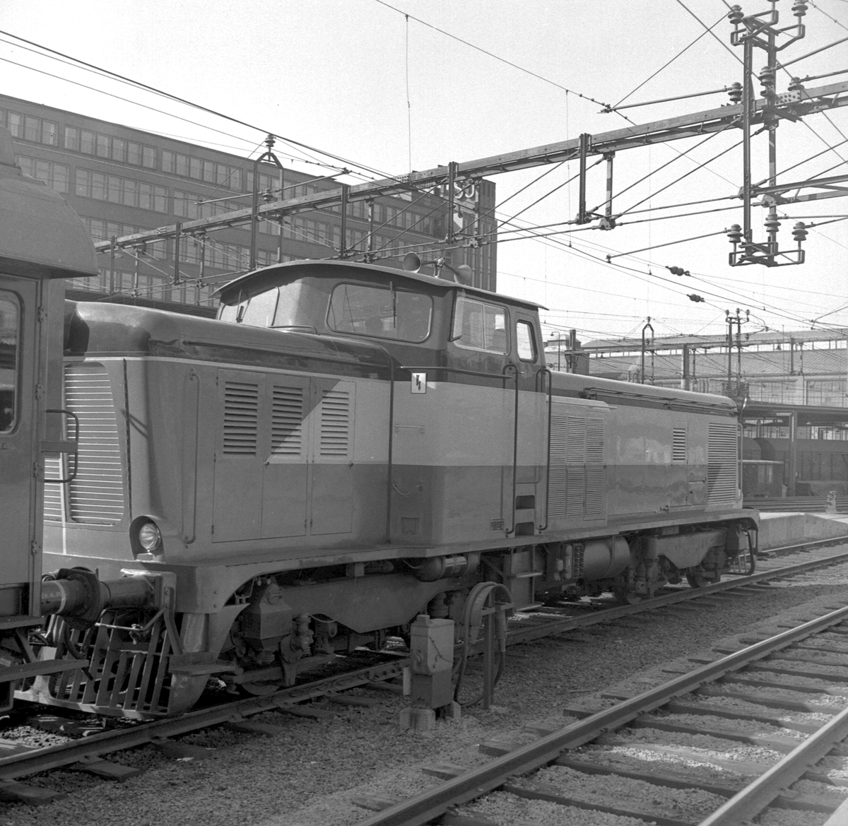Dieselpneumatiskt lok Stockholm Nynäs Järnväg SNJ T6 i folkmun "Påfågeln" eller "Papegojan". Motala Verkstads provlok skrotades 1969 endast 10 år gammalt.