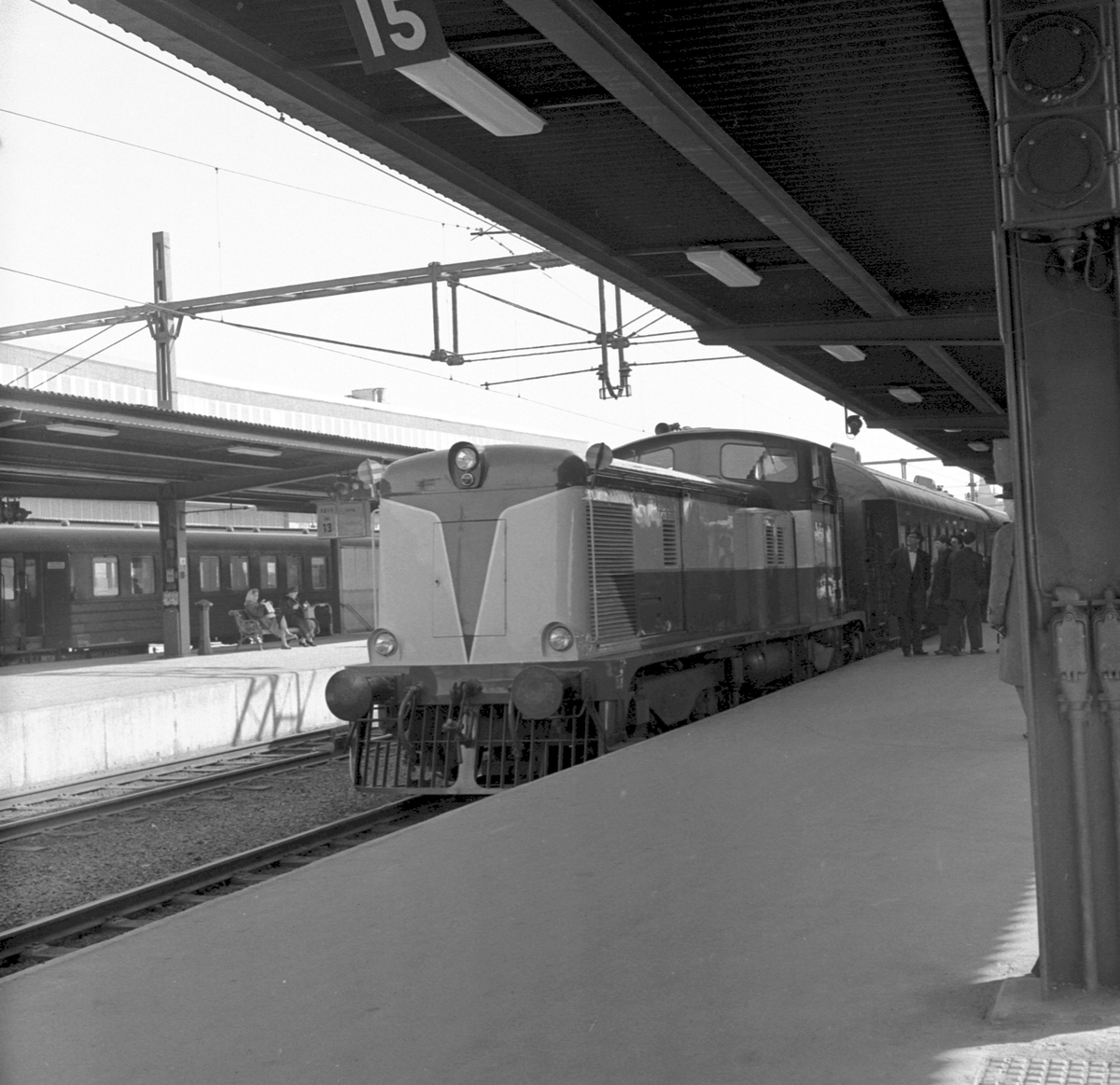 Dieselpneumatiskt lok Stockholm Nynäs Järnväg SNJ T6 i folkmun "Påfågeln" eller "Papegojan". Motala Verkstads provlok skrotades 1969 endast 10 år gammalt.