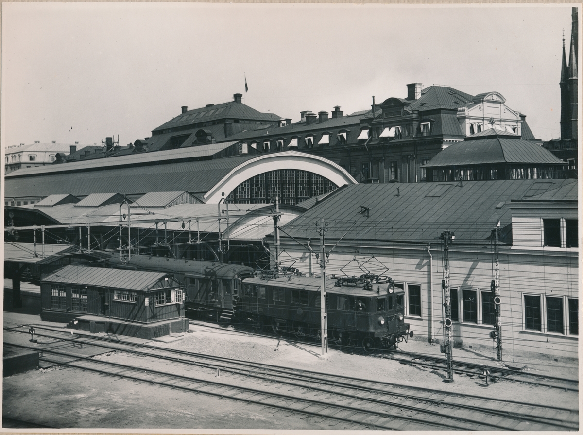 Stockholms Centralstation. Tåg nr 7 på utgående. SJ Ds 104.