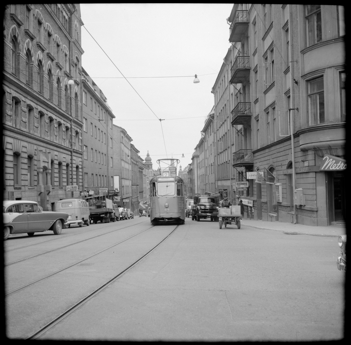 Aktiebolaget Stockholms Spårvägar, SS A26 479 "mustang" linje 2 Fredhäll - Karlaplan vid hållplats på Hantverkargatan backen upp till Polhemsgatan.