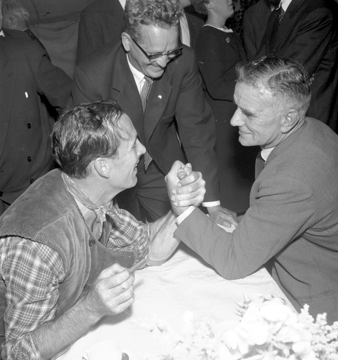 Armbrytning. Dubbelspårsinvigningen Stockholm-Göteborg i Kilsmo. Rallartåget
