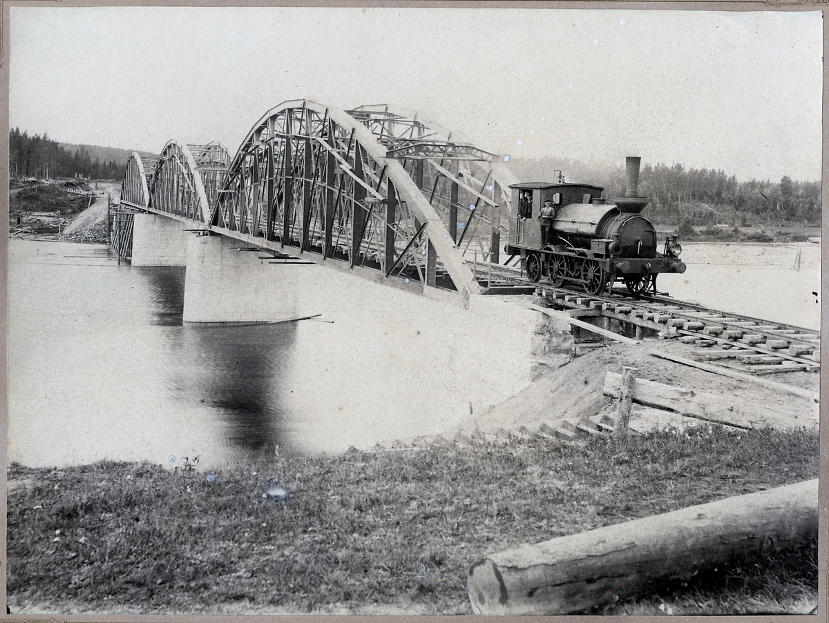 Bro över Ume älv vid Vännäs. Statens Järnvägsbyggnader, SJB 6 'Jemtland'. Tillverkat 1879. Slopat och skrotat 1898.