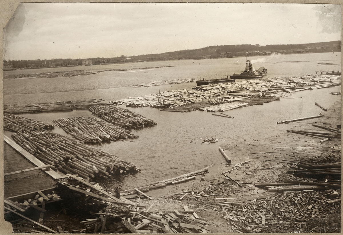 Vy över Inre fjärden från såghuset, Statens Järnvägars slipersfabrik i Piteå.