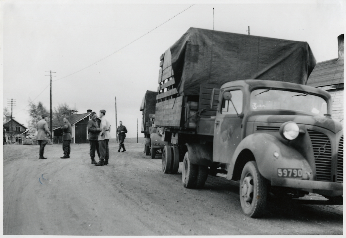 Bild tagen i samband med evakueringen av finska flyktingar i Kuttainen, hösten 1944. Militärfordon med registreringsnummer 59790.