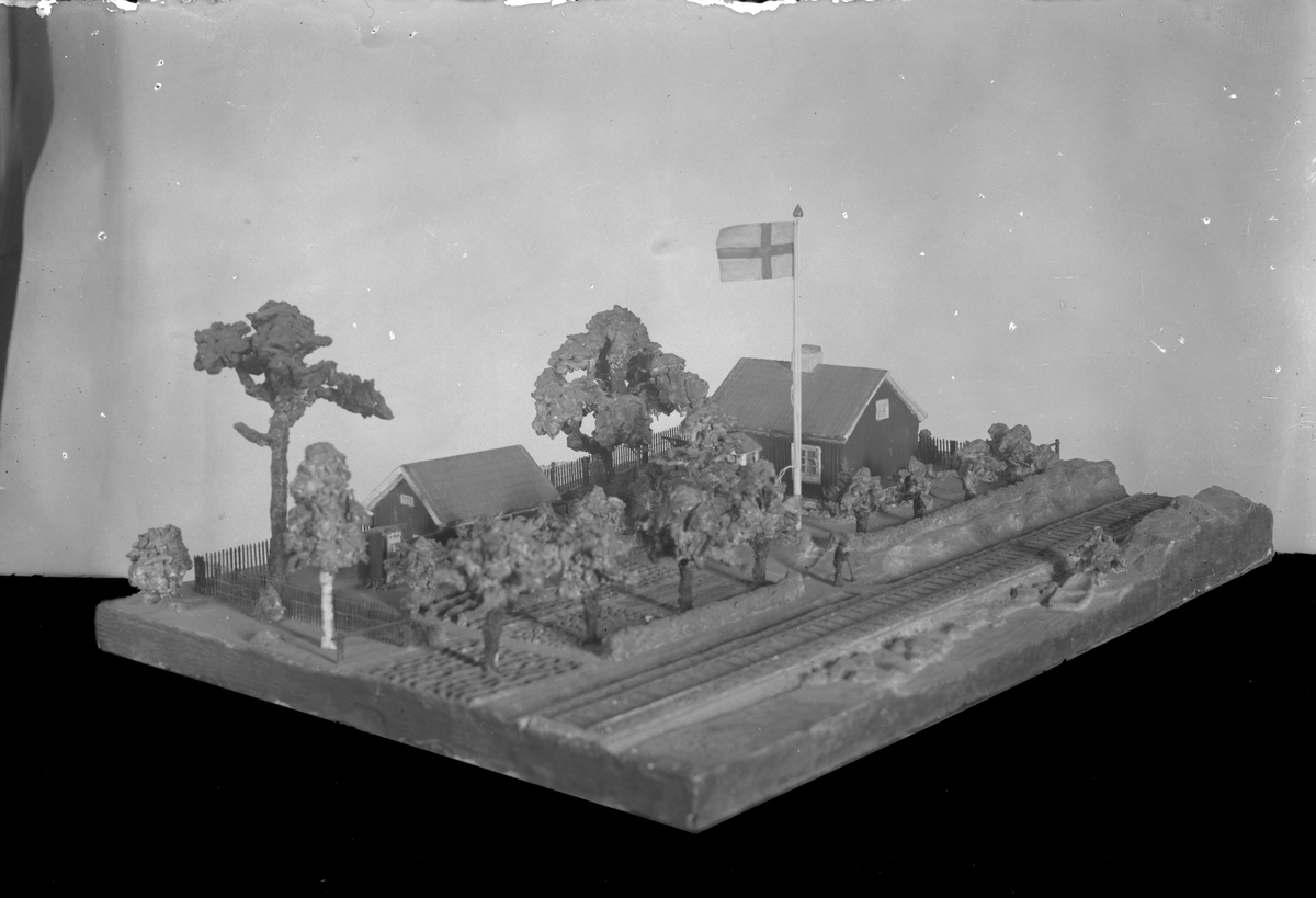 Titel: Modell av banvaktstuga med trädgård; Järnvägsmuseet