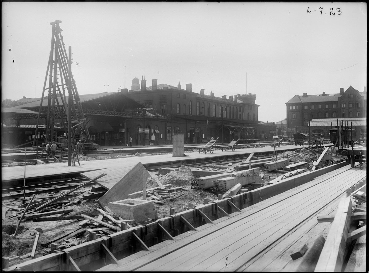 Titel: Byggnation av plattformar i den blivande banhallen vid Malmö centralstation.