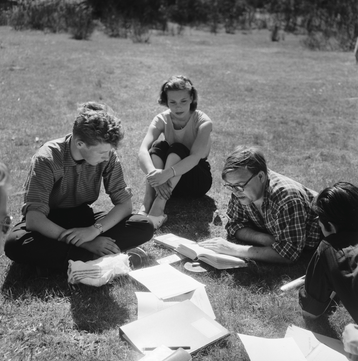 Titel: Läroverkselever på studieutflykt till Tjörnedala. (Foto i samband med Blackebergs Lärov. Tåghem)