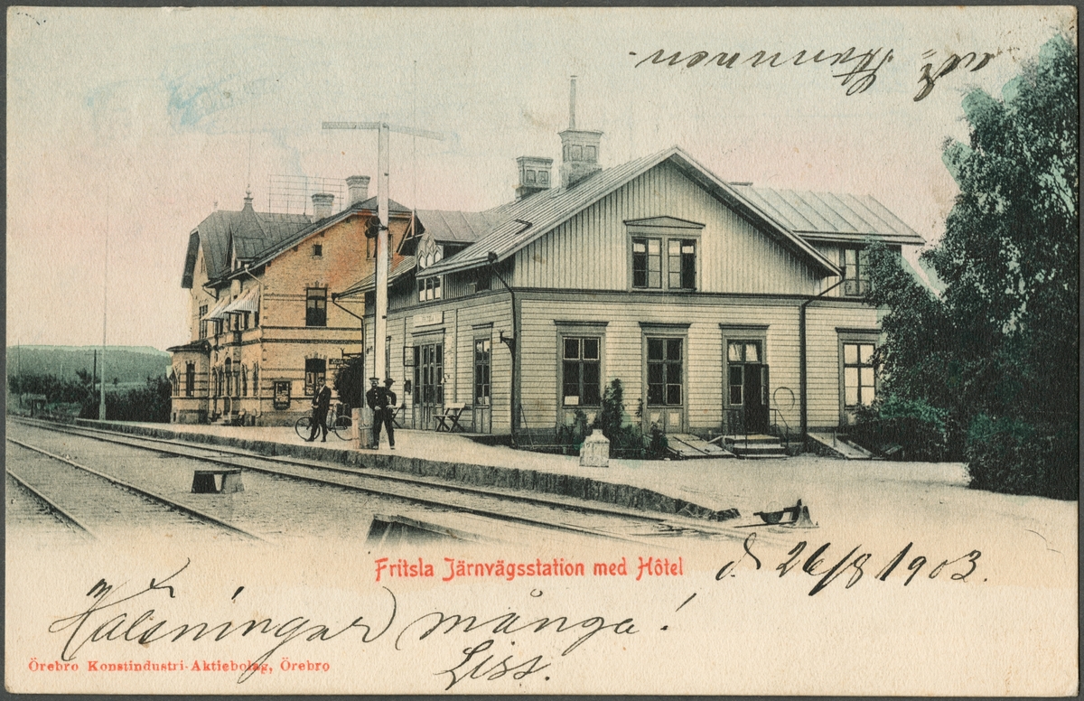 Titel: Fritsla järnvägsstation med hotellet i bakgrunden.