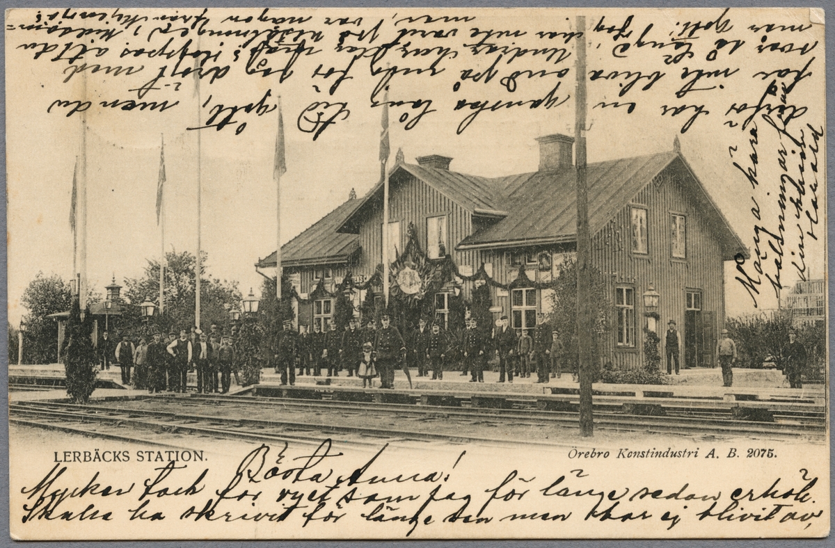 Titel: Inför kungabesöket 1898 på Lerbäcks järnvägsstation.