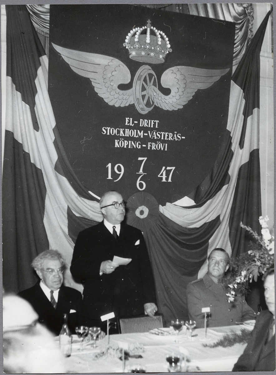 Invigningsmiddagen i Örebro med Landshövding Conrad Jonsson, Generaldirektör Gustaf Dahlbeck och Överbefälhavare Helge Jung.