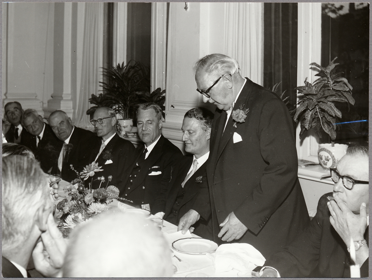 Landshövding Erik Von Heland och Generaldirektör Erik Upmark med andra på invigningsmiddagen på stadshotellet i Karlshamn.