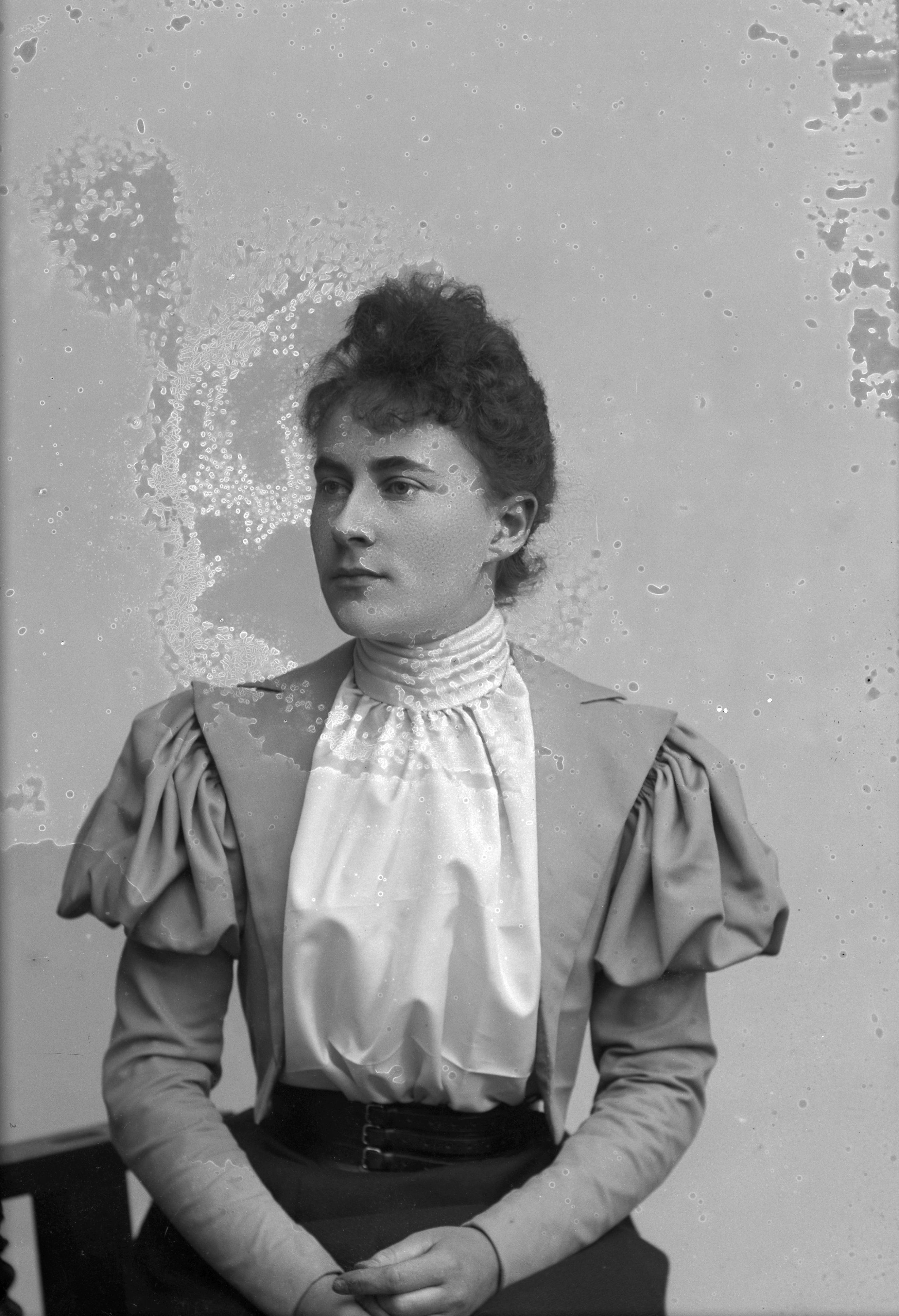 Beskrivning: Porträtt i halvfigur av Hilda Cederberg.