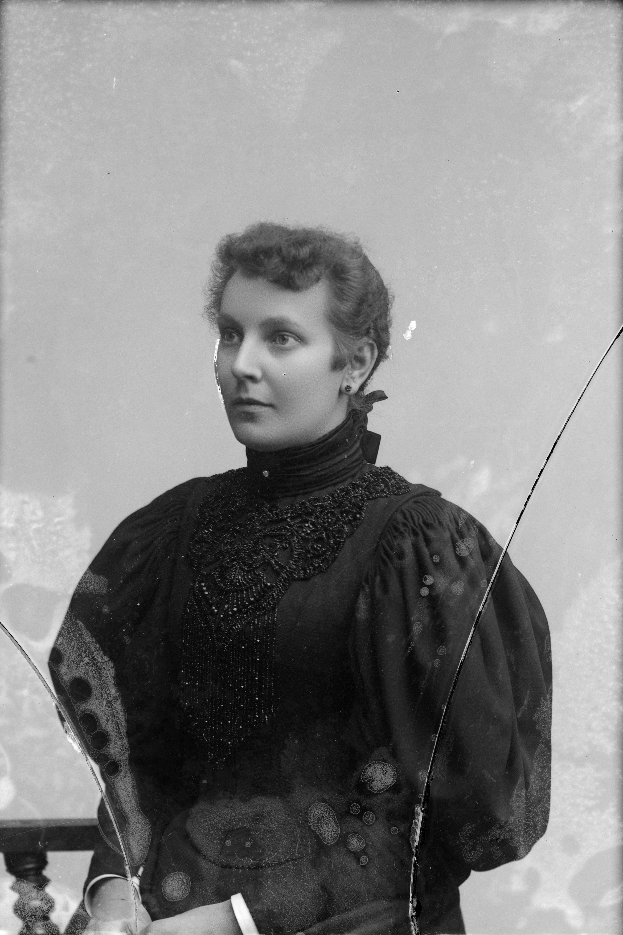 Beskrivning: Porträtt i halvfigur av fröken Thörnquist.