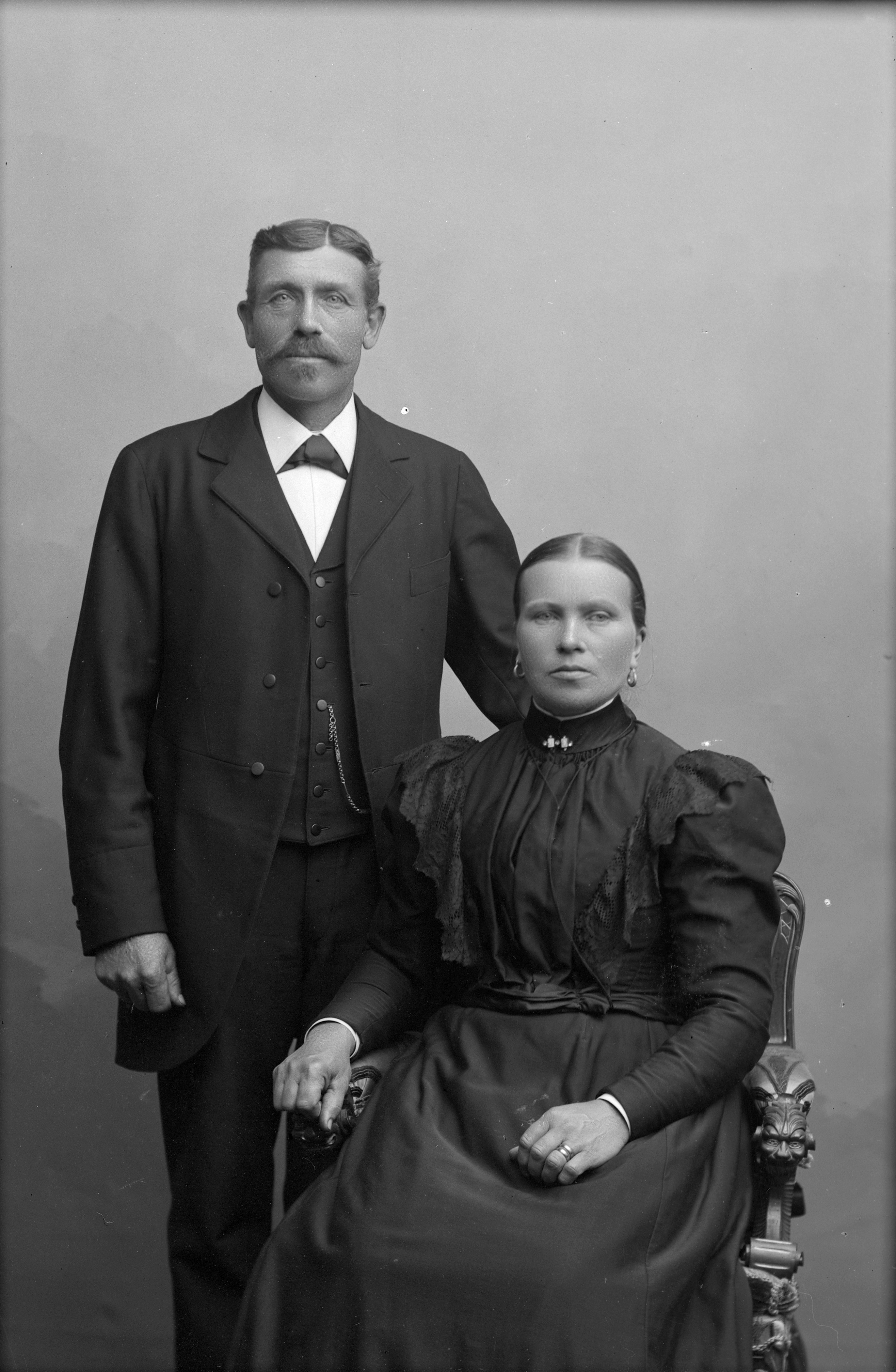 Beskrivning: Porträtt i helfigur av N. Roth med fru.
