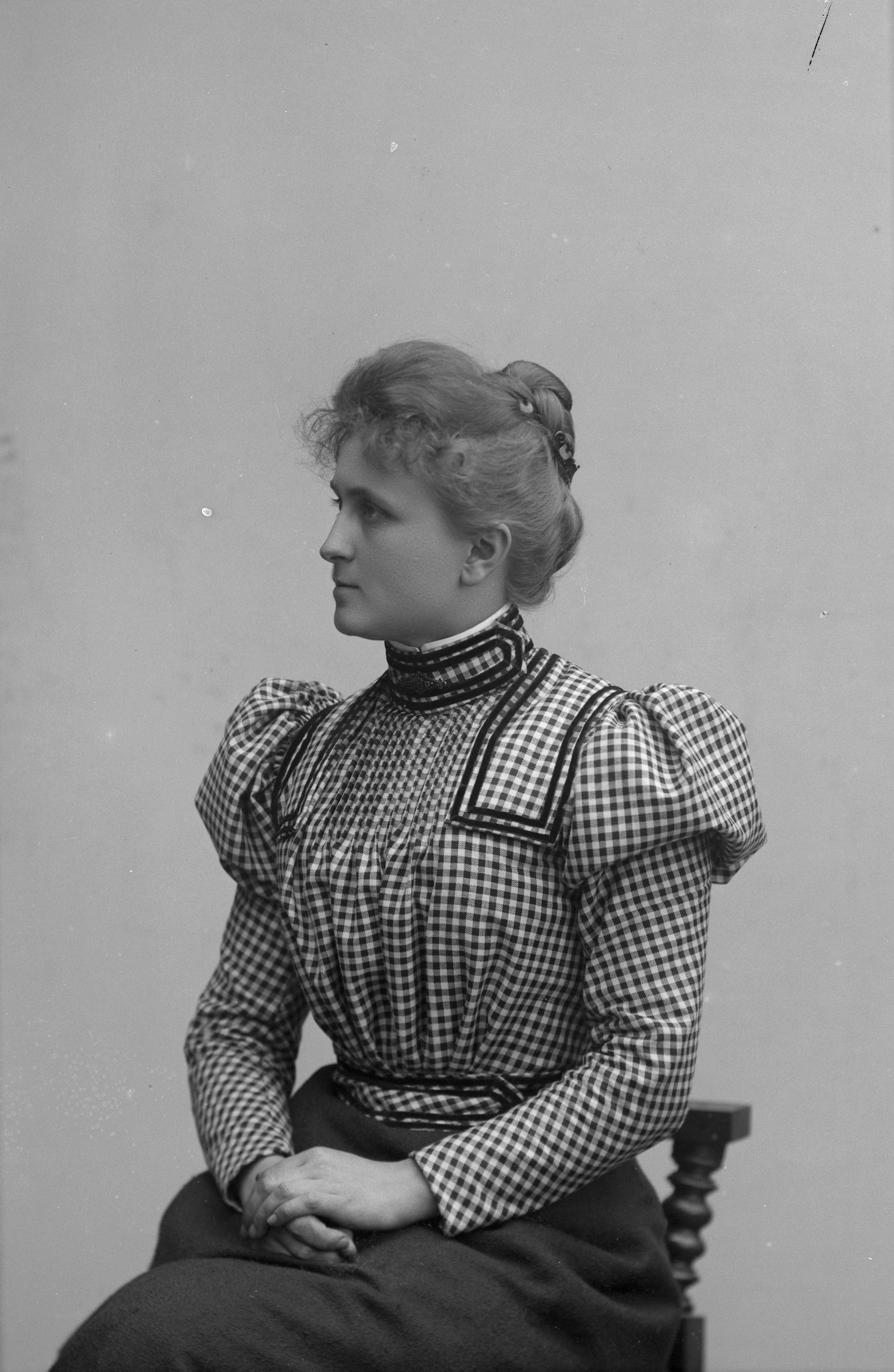 Porträtt i halvfigur av Elisabeth Jönsson, ansikte i profil.