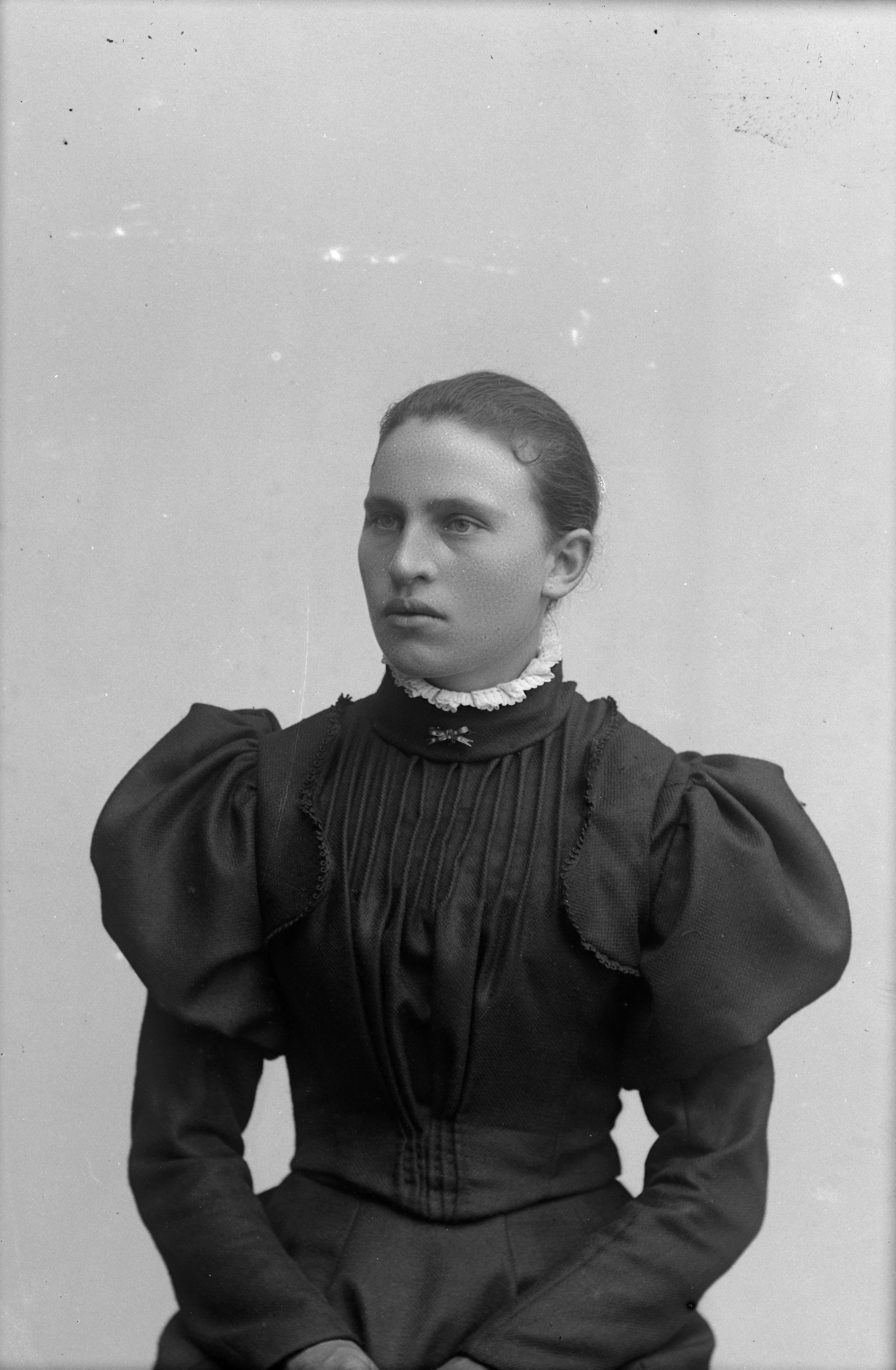 Beskrivning: Porträtt i halvfigur av Johanna Jönsson.