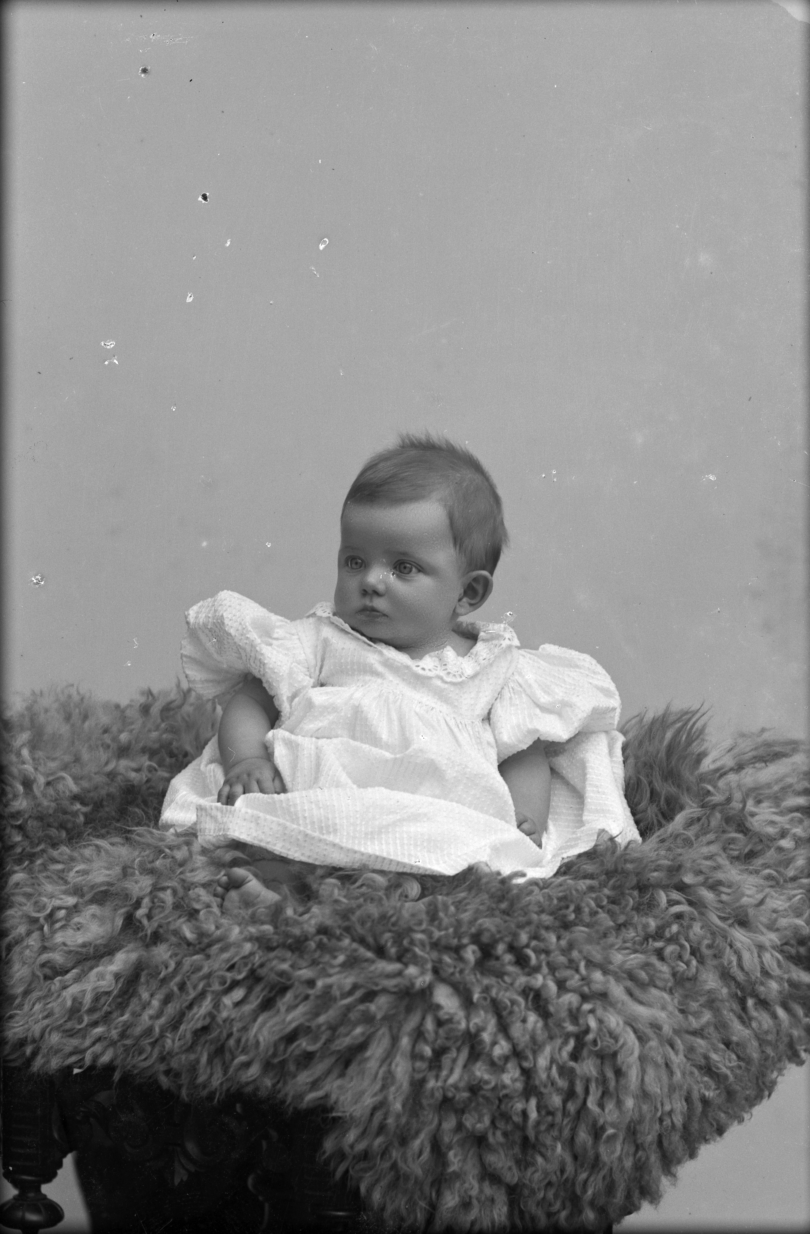 Beskrivning: Porträtt i helfigur av Hoffgards barn, sittande på pall.