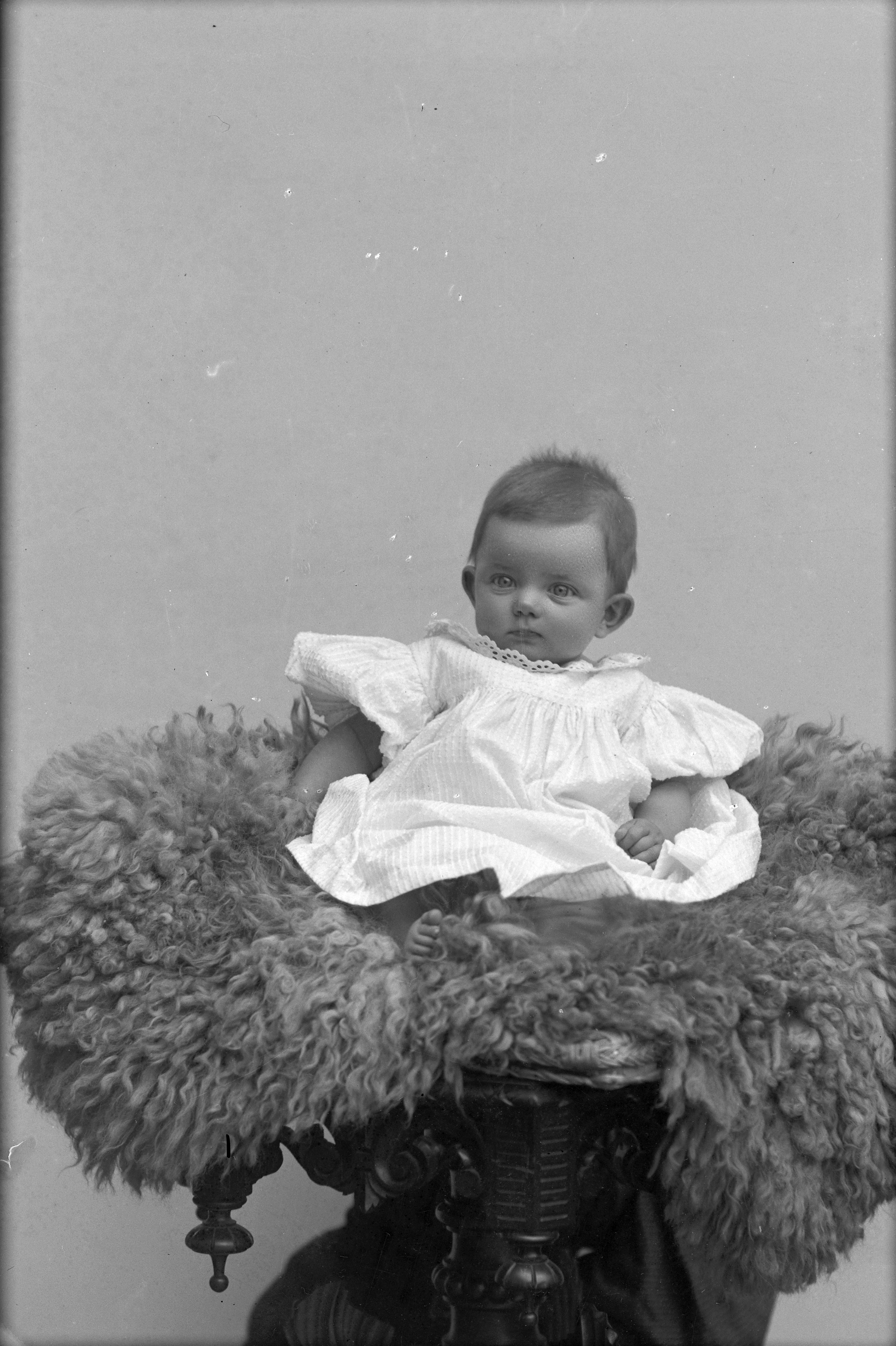 Porträtt i helfigur av Hoffgards barn, sittande på pall.