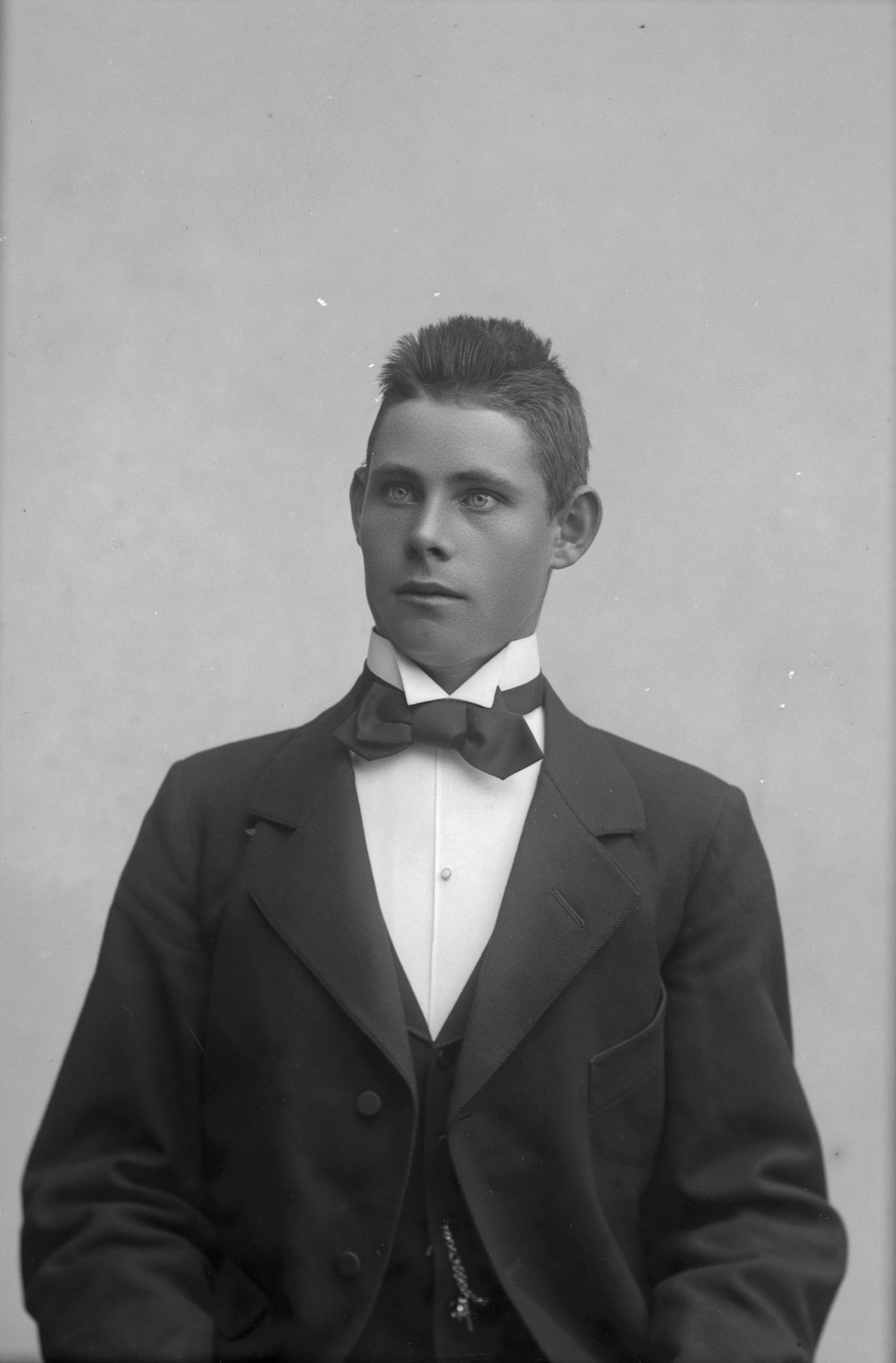 Beskrivning: Porträtt i halvfigur av Victor Nilson.