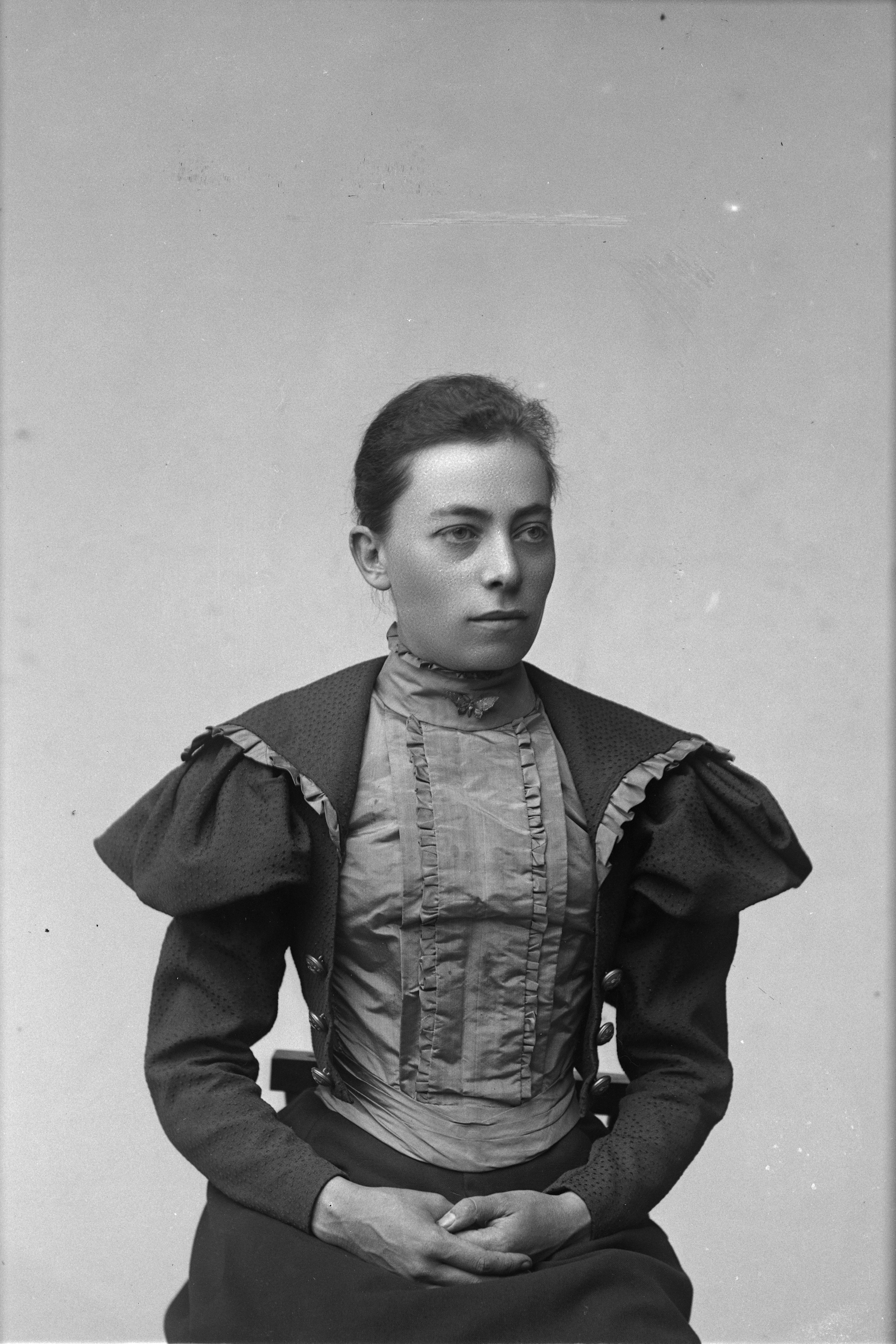 Beskrivning: Porträtt i halvfigur av E. Fredriksson.