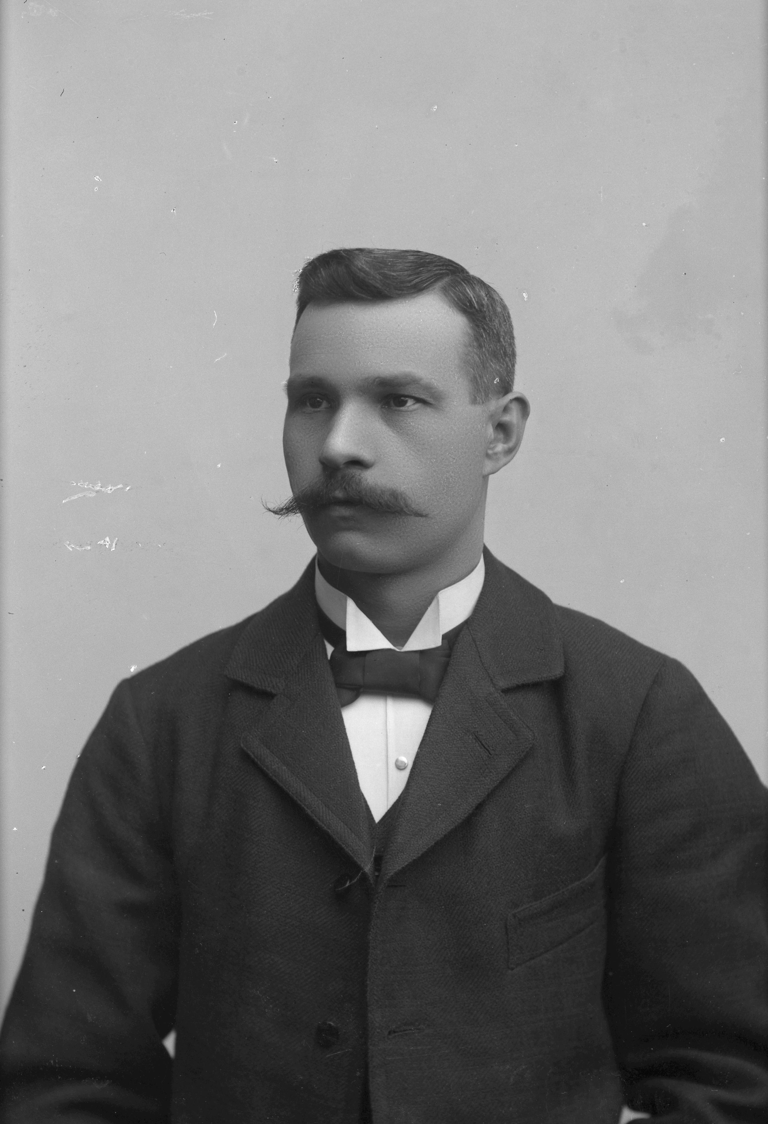 Beskrivning: Porträtt i halvfigur av P. G. Nordmark.