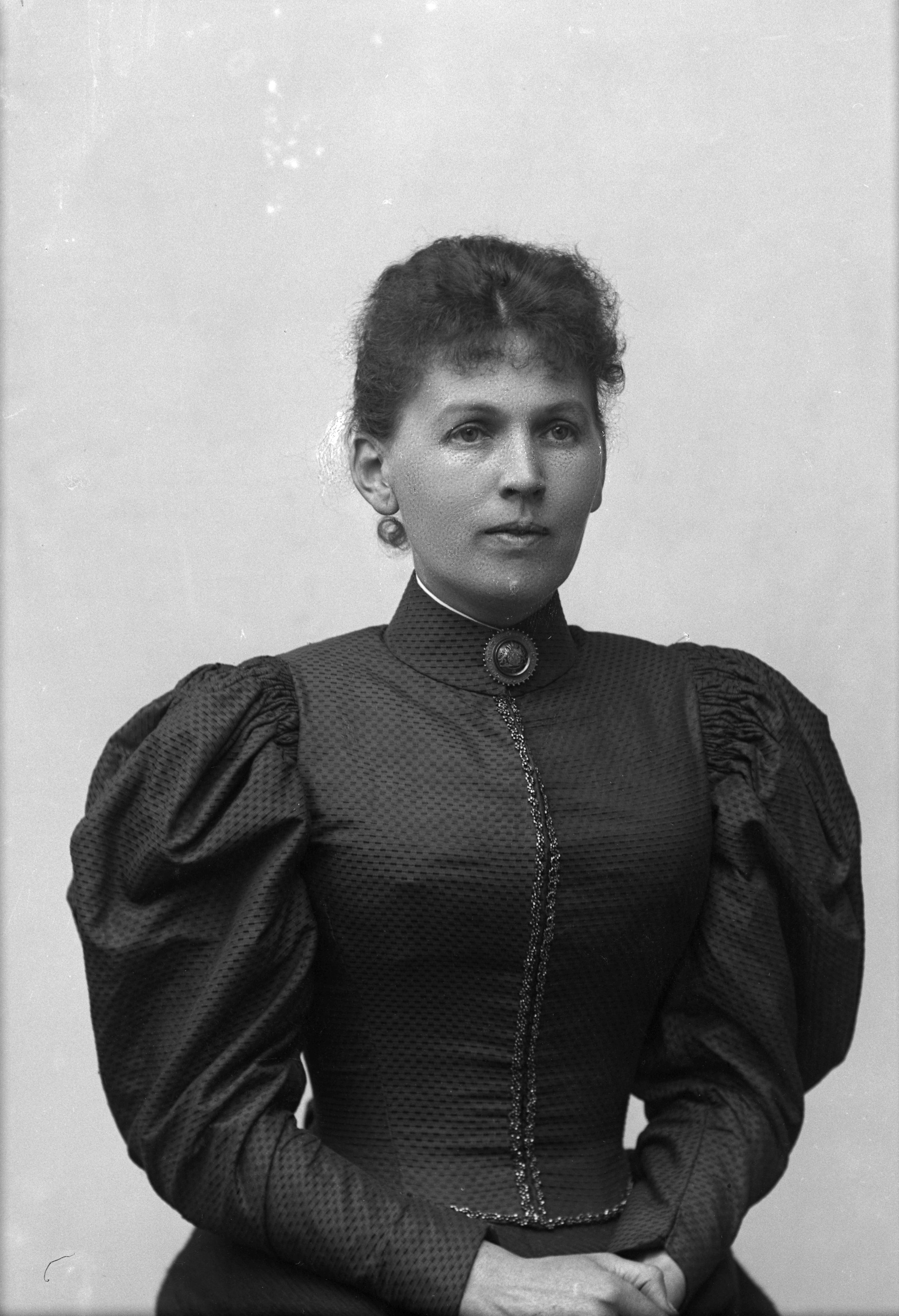 Beskrivning: Porträtt i halvfigur av fru Vallgren.