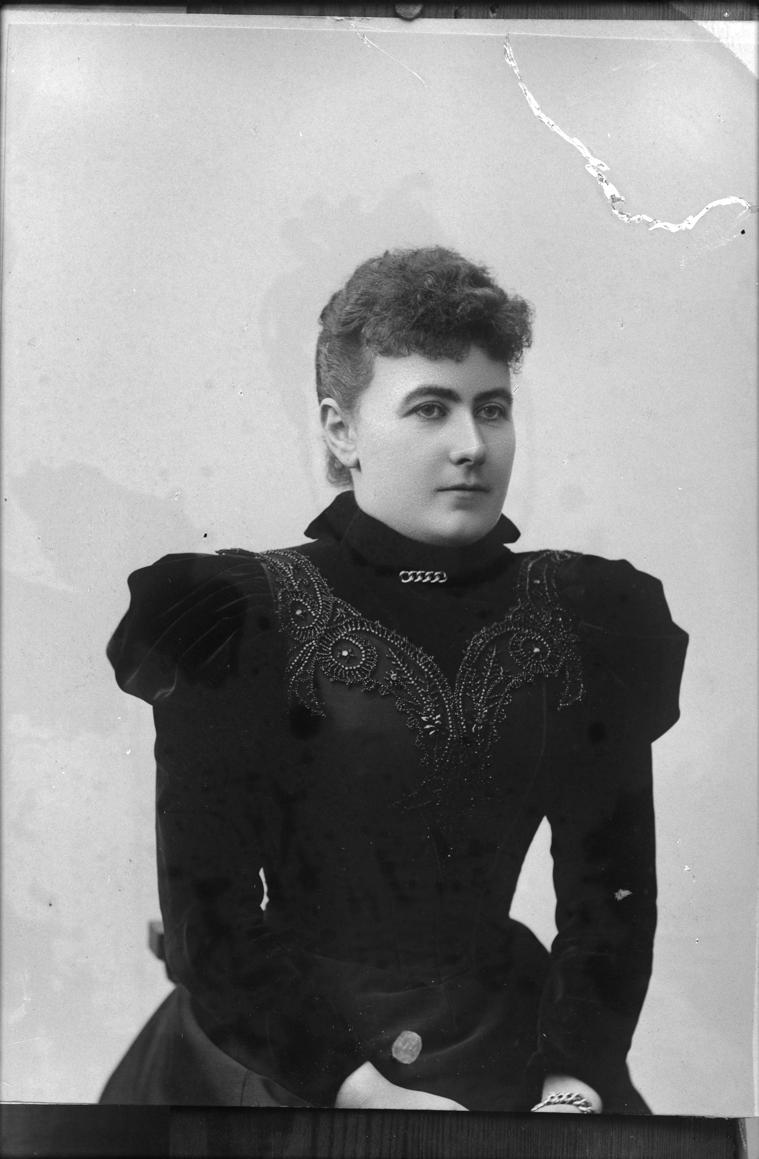Beskrivning: Porträtt i halvfigur av Ida Söderlund.